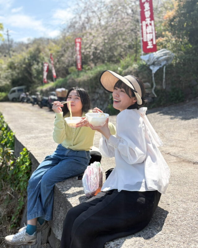 週末に野口アナと後輩・福岡さんと、伊吹島の桜まつりに行ってきました🌸